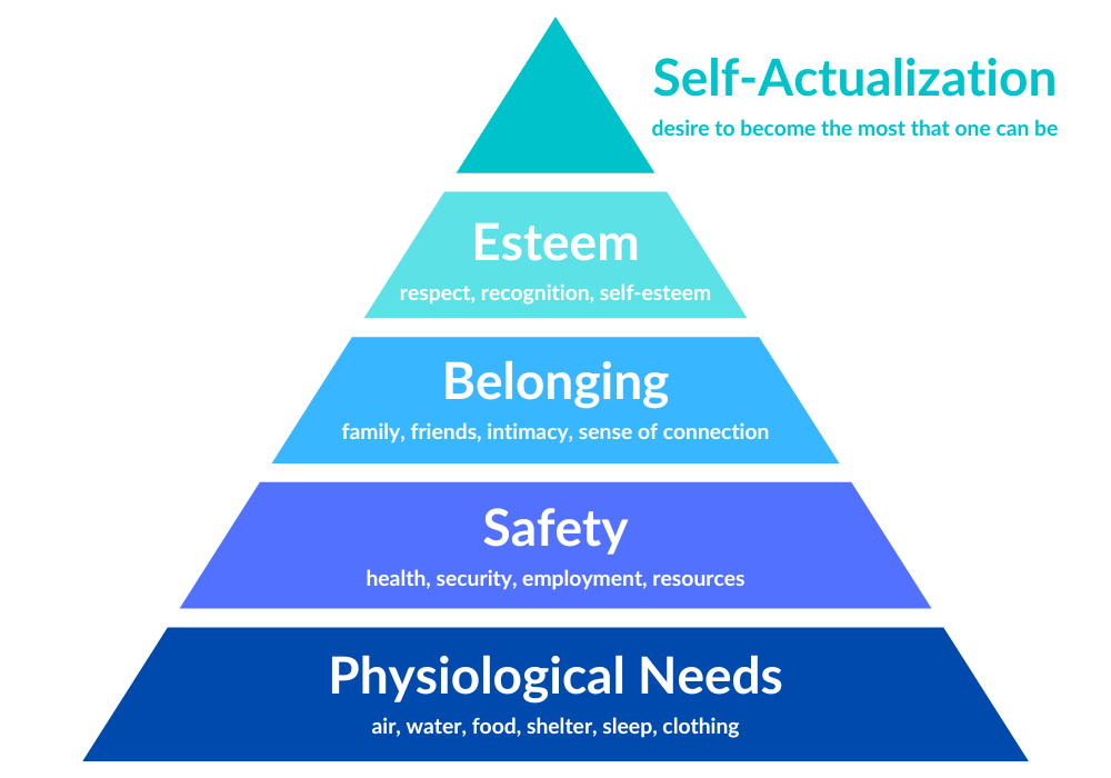 Abraham Maslow was a scientist who proposed what is a now famous hierarchy of human needs. A basic description is pictured above. The idea is that humans seek fulfillment of basic needs at the bottom and, once those needs are met, they move to seeking the “higher” needs at the top. For example, when one is hungry, they aren’t too interested in working for achieve safety until their hunger is satiated. That’s a bit of an overstatement, but is has been shown to be generally true.